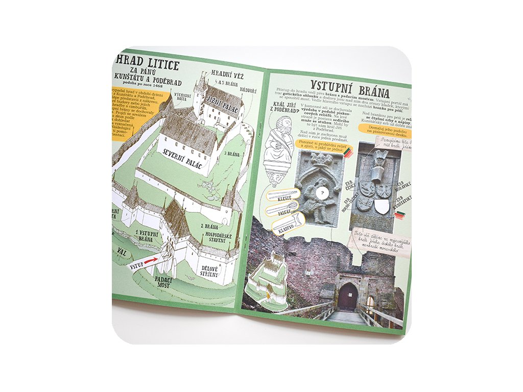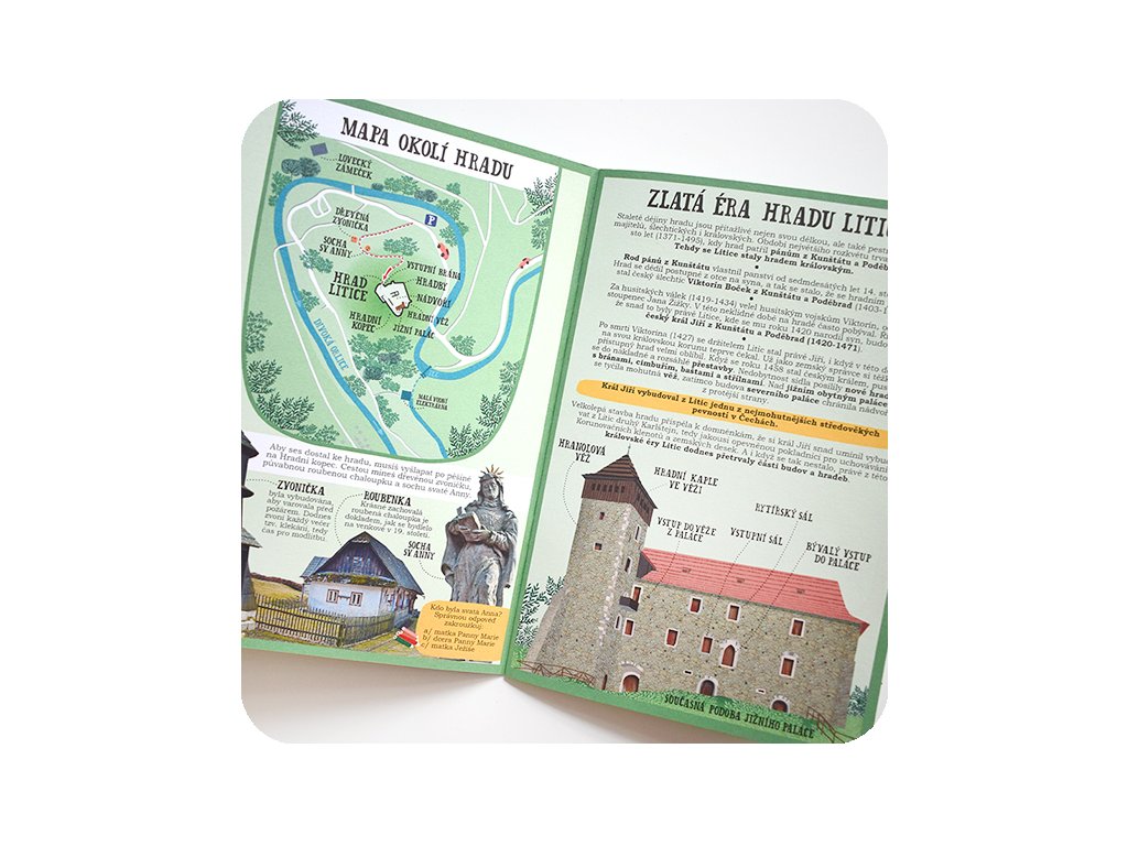 S pastelkami po hradu Litice. Individualizovaný naučný suvenýr na pokračování na šestnácti stranách o rozměru 23,5x16 cm. Průvodce po litickém hradu je č. 61 v sérii brožovaných publikací o našich nejznámějších památkách.