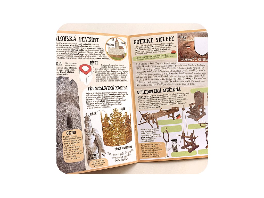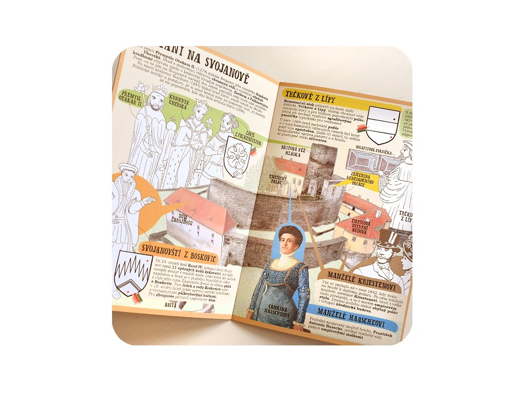 S pastelkami po hradu Svojanov. Individualizovaný naučný suvenýr na pokračování na šestnácti stranách o rozměru 23,5x16 cm. Průvodce po Svojanově je č. 54 v sérii brožovaných publikací o našich nejvýznamnějších památkách.