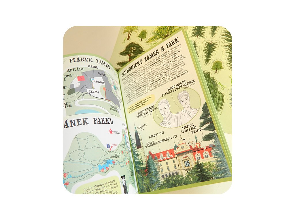 Průvodce je bez pastelek, ale s přiloženými samolepkami k vystřižení.