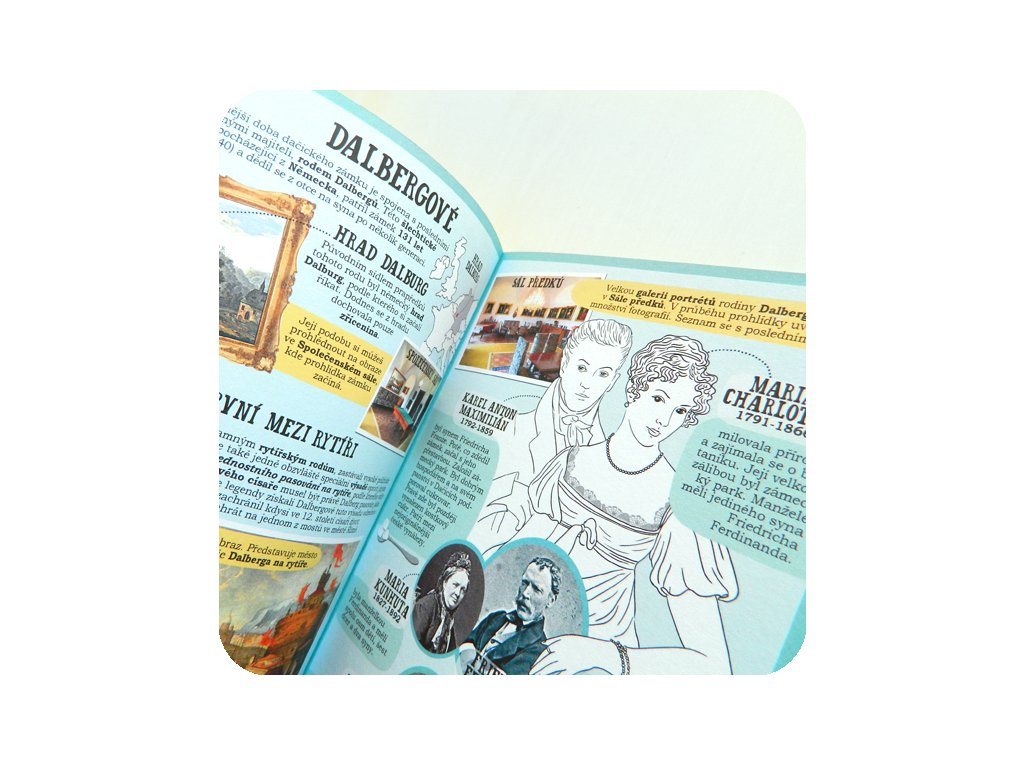 S pastelkami po zámku Dačice. První průvodce památkami pro děti.Text a ilustrace © Eva Chupíková, 2015.