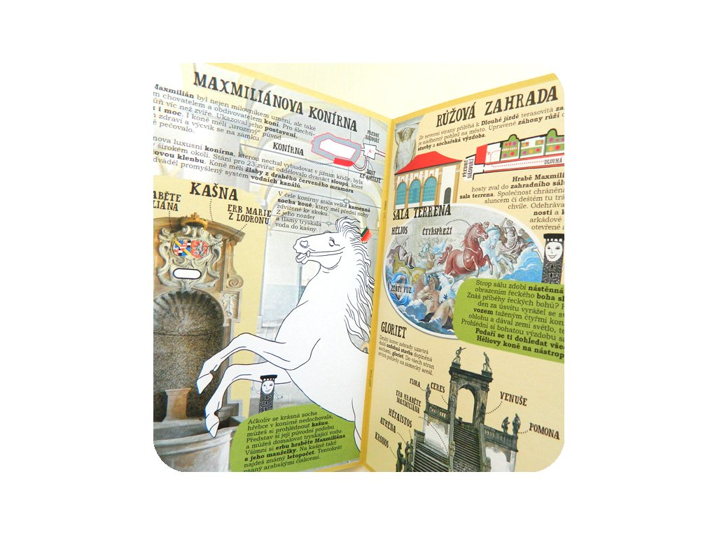 S pastelkami zámku Děčín. První průvodce památkami pro děti. Text a ilustrace © Eva Chupíková, 2015.